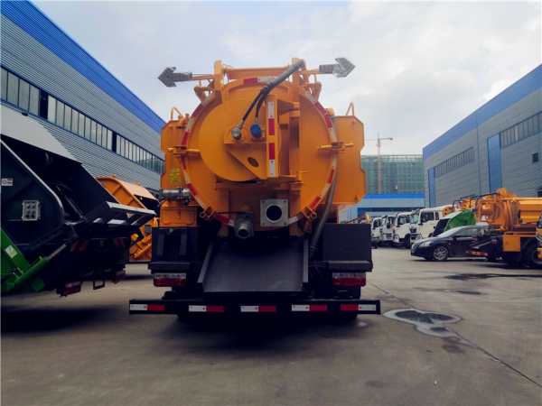 清洗部分:3方水箱,采用4mmQ235優(yōu)質(zhì)碳鋼板,水箱兩側(cè)消防接口進(jìn)水,工具箱一個。采用德國品浮高壓泵215升流量,22兆帕,配60米內(nèi)徑19#高壓管,10個大小不同噴頭一套, 后置式清洗卷盤,帶淋管裝置(用于淋洗高壓管疏通管道過后上面殘留的污物),帶氣吹水功能(用于吹出每次高壓管工作完以后內(nèi)部殘留的水漬,防止天冷結(jié)冰影響下次使用)