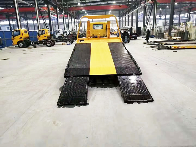 平板采用3PL折疊沖壓式平板,一拖二型,雙側聯(lián)動操作裝置??杀?噸,拖3噸,后托臂可托舉2噸。多路閥、平衡閥采用進口液壓件(意大利海德) 后工作燈3只,1個40KN液壓絞盤(25米鋼絲繩),1個工具箱,配2個小車,L型抱胎架1對,6根捆綁帶,托叉1對,托叉座1對。鏈鉤1條。后托舉機構(可拆卸),主板長4.2米。