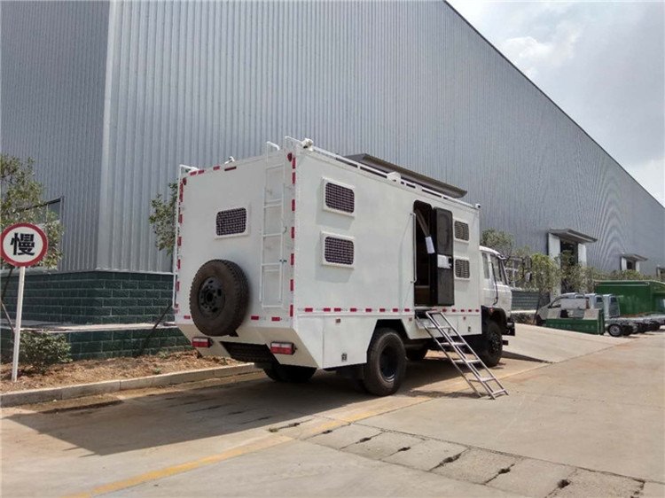 風(fēng)四驅(qū)房車是一款具備越野性能的特種車型,基于4x4越野二類底盤研發(fā),采用分時(shí)四驅(qū)的驅(qū)動系統(tǒng),特別適用于沙漠、無人區(qū)、原野、森林等無路面地形。整車大體分為三個部分:住宿區(qū)、廚房區(qū)、洗浴區(qū)。其中住宿區(qū)配有空調(diào)、床鋪、電視等基本設(shè)備,廚房區(qū)有灶臺、爐具、洗菜臺,洗浴區(qū)則有太陽能熱水器、洗臉臺、便池等。
