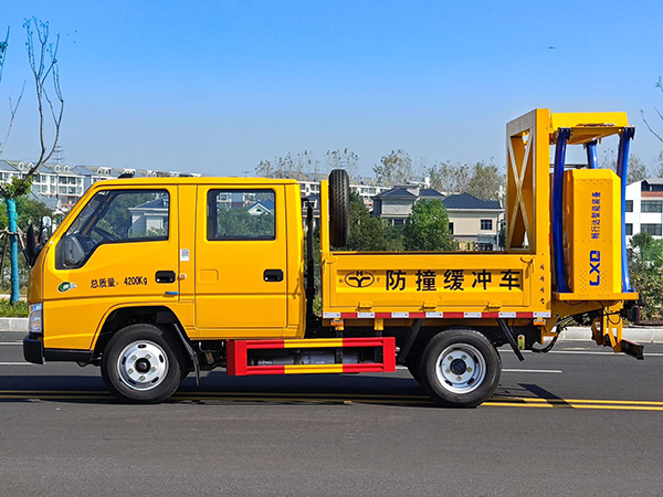 上裝配置:箱體采用國標優(yōu)質板材制作,箱體后部防撞緩沖模塊采用國際知名技術產(chǎn)品暢行達70K/80K防撞緩沖模塊,防撞緩沖吸能模塊主要由車載防撞緩沖墊和導向標志架組成,充當施工作業(yè)車輛后方的緩沖衛(wèi)士。如若發(fā)生追尾事故,能夠在肇事車輛和前方施工作業(yè)區(qū)域之間構建一個緩沖區(qū)域,通過機具結構變形吸收撞擊的能量,**限度地降低被保護人員及設備遭到碰撞的幾率。高性能液壓系統(tǒng),可實現(xiàn)快速舉升和落下操作,安全穩(wěn)定高效。
