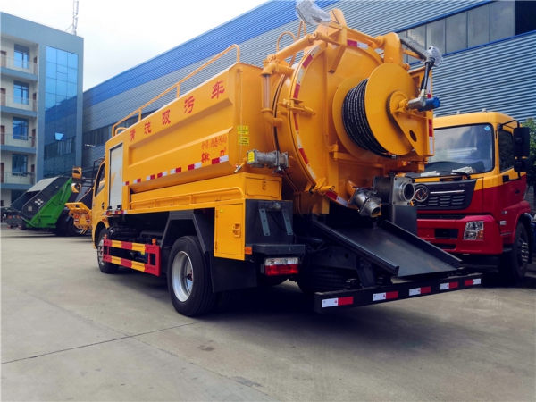 清洗部分:3方水箱,采用4mmQ235優(yōu)質(zhì)碳鋼板,水箱兩側(cè)消防接口進(jìn)水,工具箱一個。采用德國品浮高壓泵215升流量,22兆帕,配60米內(nèi)徑19#高壓管,10個大小不同噴頭一套, 后置式清洗卷盤,帶淋管裝置(用于淋洗高壓管疏通管道過后上面殘留的污物),帶氣吹水功能(用于吹出每次高壓管工作完以后內(nèi)部殘留的水漬,防止天冷結(jié)冰影響下次使用)