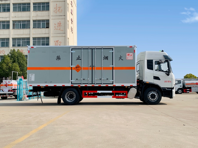 上裝貨箱配置:廂體為雙層金屬結(jié)構(gòu),外板采用靜電屏蔽效應(yīng)的冷軋鋼板,中間附以 B1 級阻燃泡沫,內(nèi)飾采用鋁板,內(nèi)部采用金屬骨架,廂體內(nèi)四周采用鋁材壓邊,廂體內(nèi)部兩側(cè)上方安裝防雨通氣孔。底板為防滑花紋板4mm(上鋪設(shè)防靜電膠皮),廂體右側(cè)開一個(gè)雙開側(cè)門(兩個(gè)雙開側(cè)門),鎖為鍍鋅鎖件,廂內(nèi)安裝固定運(yùn)載物的臥環(huán) ,貨箱內(nèi)部帶防燃煙霧報(bào)**器,門框加裝防盜報(bào)**感應(yīng)器。整車國標(biāo)反光標(biāo)示及**告標(biāo)志 (隨車工具,滅火器,三角頂燈,危險(xiǎn)品標(biāo)識,拖地靜電帶),其他按照公告標(biāo)準(zhǔn)制作。
