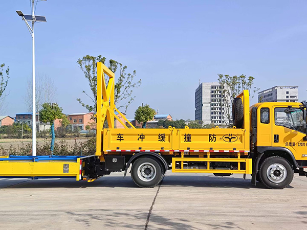 上裝配置:箱體采用國標優(yōu)質(zhì)板材制作,后部防撞緩沖模塊包采用國際知名技術(shù)產(chǎn)品暢行達 100K防撞緩沖模塊,帶有**檢測報告,矩陣式LED爆閃燈,能形成向左和向右的箭頭指向,充當(dāng)施工作業(yè)車輛后方的緩沖衛(wèi)士。如若發(fā)生追尾事故,能夠在肇事車輛和前方施工作業(yè)區(qū)域之間構(gòu)建一個緩沖區(qū)域,通過機具結(jié)構(gòu)變形吸收撞擊的能量,**限度地降低被保護人員及設(shè)備遭到碰撞的幾率。**電動液壓**系統(tǒng),性能穩(wěn)定,安全可靠,可實現(xiàn)平穩(wěn)舉升和降落。